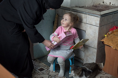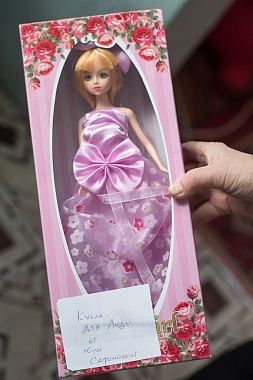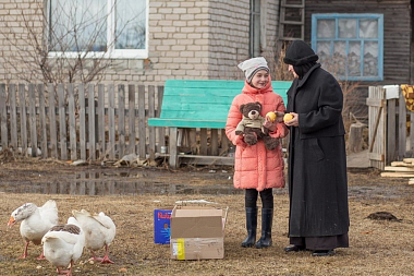 Варю сестры знают уже давно – это очень отзывчивая и добрая девочка: любит помогать в храме, прибегает к сестрам-церковницам после школы, а потом едет домой в соседнюю деревню. Варя была очень рада подаркам – коробку открыли прямо во дворе.