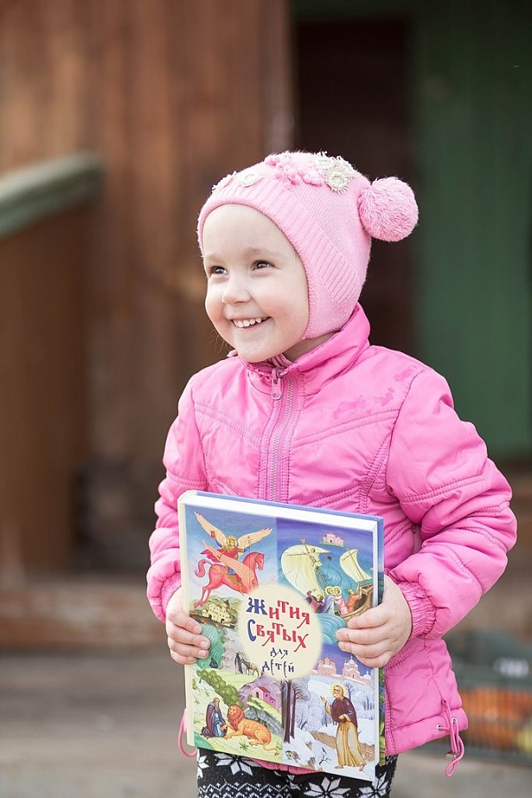 В деревне Лаптево четырехлетней Лиде, улыбчивой девочке, с одного взгляда полюбились две книжки: “Жития святых для детей“ – яркая, красочная книга, несколько экземпляров которой нам прислала одна благочестивая женщина Светлана из Москвы, купив их в лавке Сретенского монастыря, и вторая – музыкальная книжка с клавишами. В коробке были и краски, фломастеры, игры, сладости, мягкий добрый мишка, новые платьица – она все разглядывала с большой радостью, но несколько раз возвращалась к книгам. Померили и новую одежку – всё оказалось впору и очень ей к лицу.