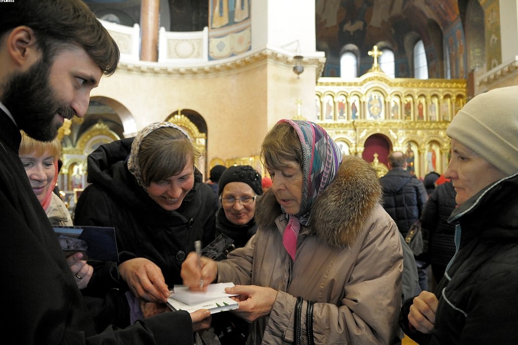Некоторые отрывки из фильмов были показаны на встрече. Затем Анна Ершова, петербургский представитель издательства «Никея», которое является соорганизатором великопостных встреч, сделала обзор книг митрополита Антония Сурожского. Слушатели задали множество вопросов участникам.