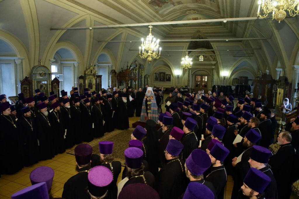 «Дорогие и возлюбленные отцы и братья! Я очень рад нашей сегодняшней встрече. Обычно мы на Крестопоклонную Неделю в своих проповедях поясняем, что в середине поста крест выносится для того, чтобы подкрепить верующих в их подвиге поста, молитвы, воздержания и покаяния. Мне же хотелось в эту седмицу встретиться со всеми вами, чтобы поощрить вас церковными наградами за повседневное усердное служение.