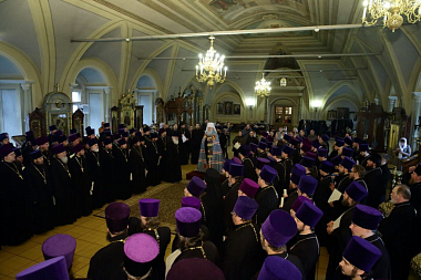 В этом году мы вспоминаем печальные события, которые пережила наша Церковь сто лет назад. Мы должны, в первую очередь, назидаться подвигом Новомучеников и исповедников Церкви Русской и в своих проповедях знакомить прихожан с тем, как Церковь выстояла в период гонений, как мужественны были наши священнослужители. Мы поименно причислили к лику святых около двух тысяч, но в решении Архиерейского Собора сказано, что мы причисляем к лику святых и тех, которые неизвестны нам, но ведомы Богу – а таких святых людей у нас очень много. Мы благодарим Господа за то, что Он дает нам счастье стоять у Святого Престола, свободно проповедовать евангельское учение. Мы должны осуществлять свое служение, подражая Новомученикам и исповедникам Церкви Русской.