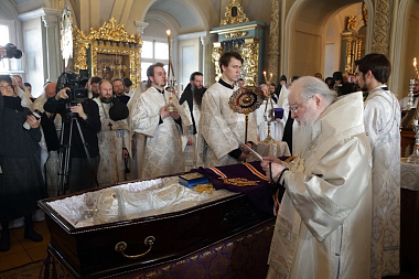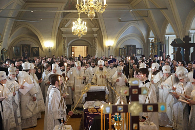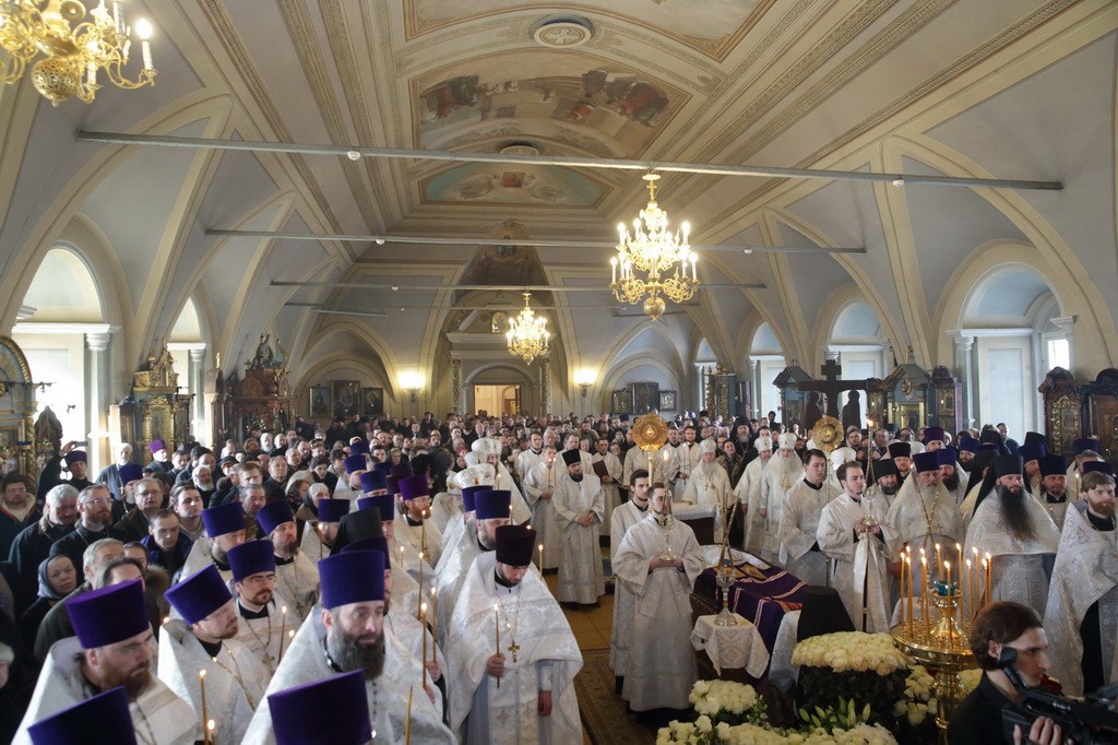 27 февраля 2018 года в Успенском храме Богородице-Смоленского Новодевичьего монастыря Москвы Патриарший наместник Московской епархии митрополит Крутицкий и Коломенский Ювеналий совершил Литургию Преждеосвященных Даров.