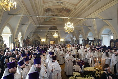 Его Высокопреосвященству сослужили митрополит Новгородский и Старорусский Лев, епископ Илиан (Востряков) и викарии Московской епархии: епископы Видновский Тихон, Серпуховской Роман, Зарайский Константин, Луховицкий Петр, секретарь Патриарха Московского и всея Руси по г. Москве протопресвитер Владимир Диваков, секретарь Московского епархиального управления протоиерей Михаил Егоров, благочинные церковных округов и духовенство Московской епархии.