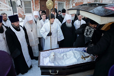Затем митрополит Ювеналий возглавил чин отпевания новопреставленного архиепископа Григория. Ему сослужили архипастыри, принимавшие участие в Литургии, а также председатель Отдела внешних церковных связей митрополит Волоколамский Иларион, митрополит Курганский и Белозерский Иосиф и многочисленное духовенство Московской епархии.