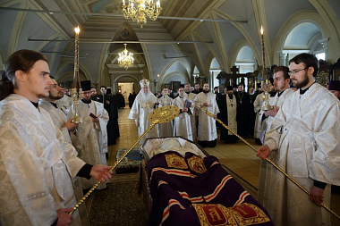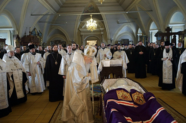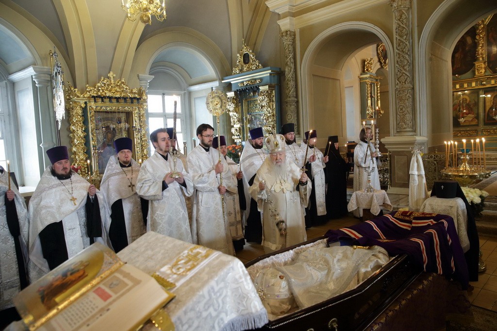 Владыка митрополит совершил панихиду по новопреставленному архипастырю.