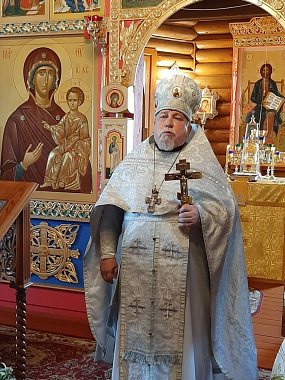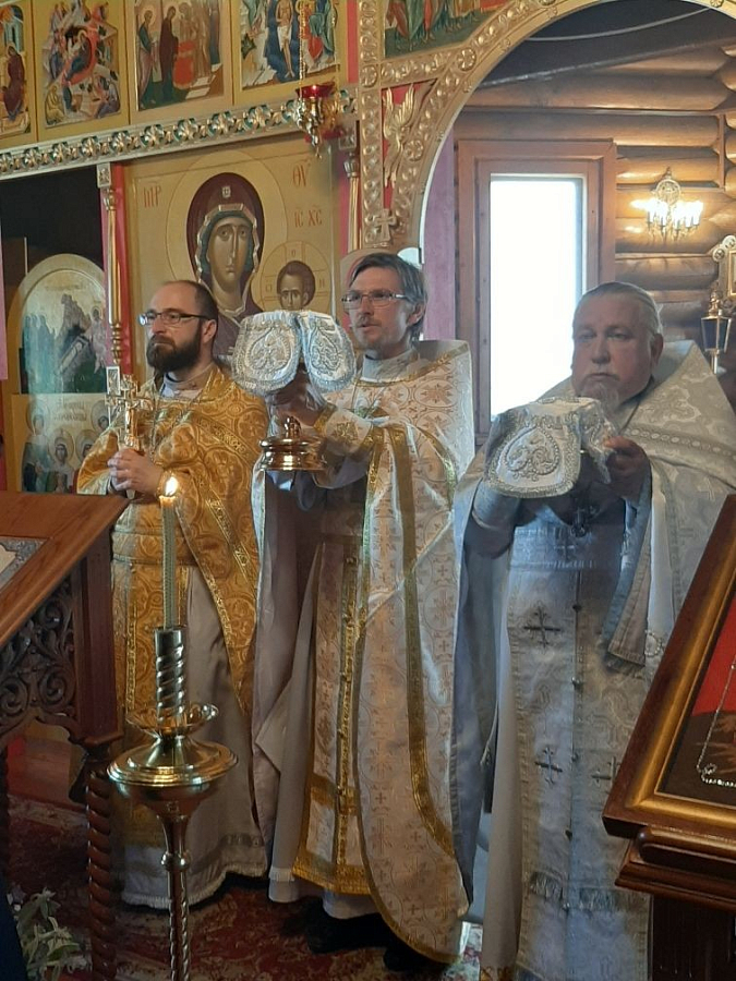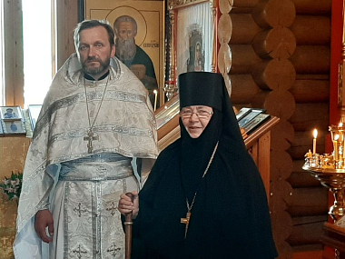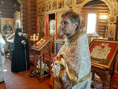 Протоиерей Александр Куликов произнес для верующих проповедь по случаю престольного дня и поздравил с юбилеем протоиерея Владимира Беляева, трудами которого был построен монастырский храм.