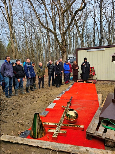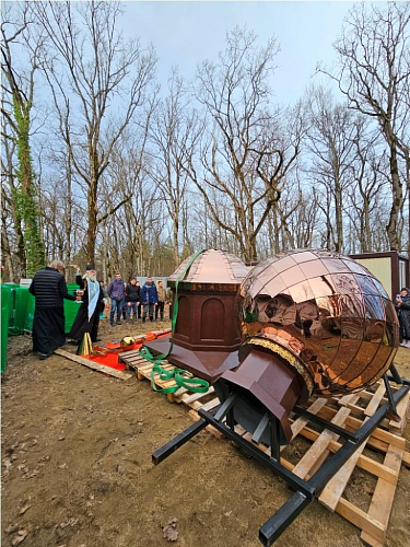 23 ноября на первый храм торжественно установили медный купол и крест. Молебен на их освящение совершил местный священник – протоиерей Евгений Султанов из храма станицы Григорьевской в Северском районе Краснодарского края, который регулярно в течение десяти лет совершает в этом месте молебны и служит панихиды.