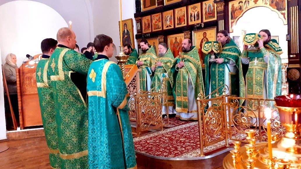 Божественную литургию возглавил и.о. настоятеля Новоторжского Борисоглебского мужского монастыря архимандрит Амфилохий (Желябовский) в сослужении игумена Корнилия (Малинина), игумена Силуана (Шальнева), и.о. наместника Старицкого Свято-Успенского мужского монастыря г. Старицы иеромонаха Дамаскина (Леонова), иеромонаха Гавриила (Хальченя), иеромонаха Амвросия (Желябовского), протоиерея Вадима Желябовского.