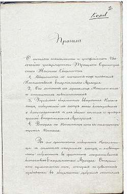 Правило 6. Прием сестер производить сперва в разряд новоначальных для испытания на год или более, смотря по качествам вступающей. По довольном испытании оказавшаяся благонадежною приемлется решительно в число сестер общежития и о сем доводится до сведения епархиального архиерея или, смотря по требованию обстоятельств, испрашивается его разрешение на принятие.