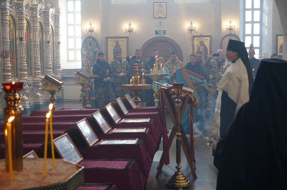 Упокой Господи, усопших рабов Твоих, воинов Петра, Владимира, Владимира, Григория, Василия, Анисима, Сергия, Андрея, Димитрия, Николая, Димитрия, и всех за Веру и Отечество на брани убиенных, и сотвори им вечную память.
