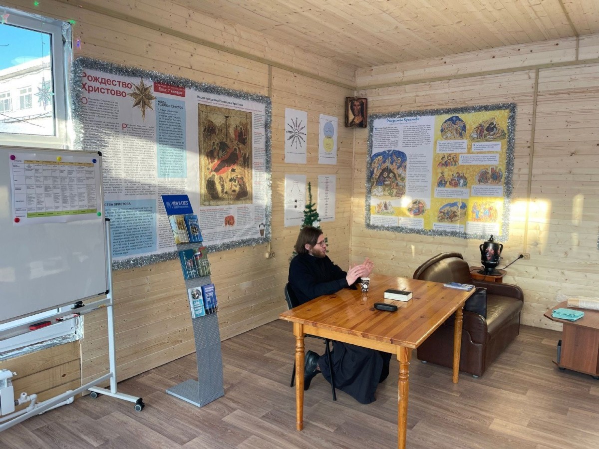27 января в центре состоялась миссионерская беседа «Зачем человеку нужна вера?». Занятие провёл насельник Раифского монастыря иеродиакон Кронид (Полежаев). Священнослужитель рассказал о путях воцерковления людей, о поисках истины, о промысле и попущении Божием в нашей жизни, о любви Господа к человеку.