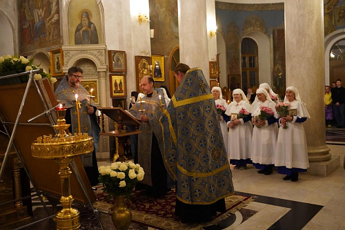 За богослужением пел хор сестер монастыря и воспитанниц пансиона «Отрада».
