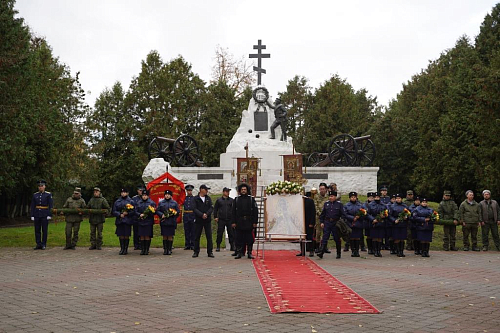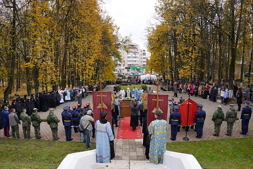 По окончании богослужения из собора вместе с Калужской иконой Божией Матери выдвинулся крестных ход, который прошел до сквера 1812 года, где расположены две их трех основных братских захоронений русских солдат-участников Малоярославецкого сражения. В сквере 1812 года была совершена лития памяти вождей и воинов, павших в этом сражении.