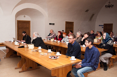 После обсуждения доклада настоятель монастыря игумен Пантелеимон (Королев) показал фотографии и зарисовки 1960–1990-х годов, которые ему удалось найти.