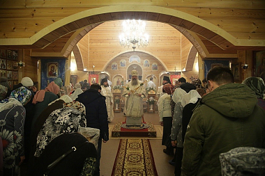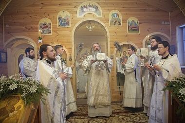 За праздничным богослужением Его Высокопреосвященству сослужили: благочинный Красноуфимского церковного округа митрофорный протоиерей Андрей Иванков, помощник ректора Екатеринбургской духовной семинарии по общим вопросам иеромонах Филипп (Киселев), духовенство благочиния и Екатеринбургской епархии.