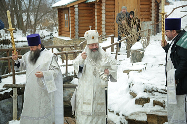 По окончании Литургии митрополит Кирилл совершил чин великого освящения воды источника в честь Боголюбской иконы Божией Матери. Великое освящение воды – особый чин, во время которого вспоминается евангельского событие, ставшее освящением самого естества воды через погружение в нее Бога во плоти.