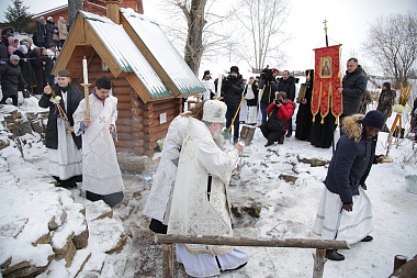 По окончании Литургии митрополит Кирилл совершил чин великого освящения воды источника в честь Боголюбской иконы Божией Матери.
