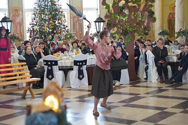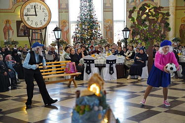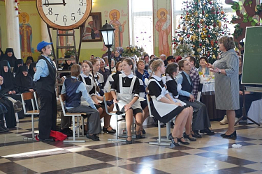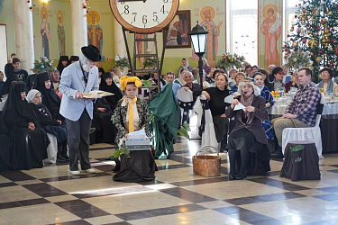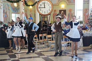 Многие из них – участницы военно-патриотического клуба в честь Святителя Николая – кадетского казачьего отряда. Они приносят казачью кадетскую присягу, осваивают начальную военную подготовку – уставную, строевую, медицинскую. Осваивают верховую езду, традиционную казачью фланкировку шашками, разбирают и собирают автомат Калашникова. Трудно поверить, что они все это успевают. Однако это факт. Может быть, поэтому и смысл сказки им понятен и близок. Поэтому они учатся ценить свое и чужое время – рабочее, учебное. Ценят и праздничное время, когда можно побыть рядом с близкими и дорогими людьми. Близкие и дорогие люди для девочек-сирот и социальных сирот это в первую очередь настоятельница Никольского Черноостровского монастыря игумения Николая (Ильина), ставшая для них всех настоящей Матерью, сестры обители, учителя гимназии, прихожане и гости монастыря. Бывшие сестры монастыря, ставшие настоятельницами и игумениями в других женских монастырях России. Все те, кого они и пригласили на этот праздник.