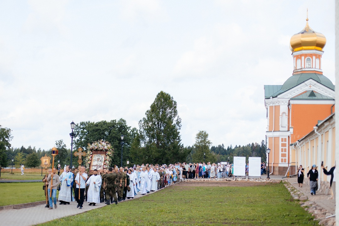 Накануне вечером в обители было совершено всенощное бдение. Празднование Иверской иконы Божией Матери 10 августа установлено в память о чудесном избавлении Валдая от холеры в XVIII веке, когда по молитвам перед иконой эпидемия прекратилась. Дата была официально закреплена в 1849 году указом Святейшего Синода, предписавшего ежегодный крестный ход в благодарность за спасение.
