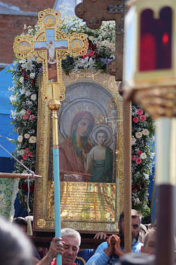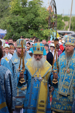 После богослужения, по случаю престольного праздника, был совершен крестный ход вокруг обители с чудотворной Коробейниковской иконой.