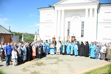 Перед началом Литургии епископ Максим совершил заупокойную литию на могиле затворницы Мелании, которая 58 лет (из них 17 лет в затворе) подвизалась в монастыре и упокоилась 24 июня 1836 г.