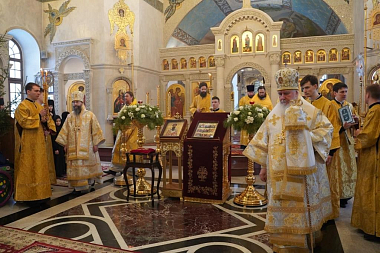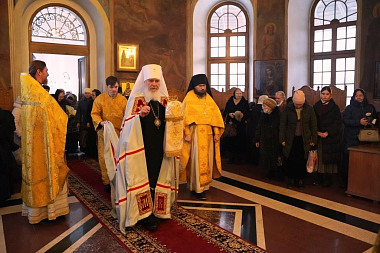 Его Высокопреосвященству сослужили епископ Тарусский Леонид, викарий Калужской епархии, священослужители Калужской епархии.