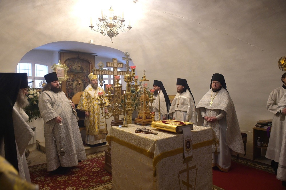 Его Высокопреосвященству сослужили: благочинный монастырей Вологодской епархии игумен Иоасаф (Вишняков), ректор Вологодской духовной семинарии протоиерей Алексий Ольховников, исполняющий обязанности наместника Спасо-Прилуцкого монастыря иеромонах Ферапонт (Широков), руководитель Службы протокола Вологодской епархии иерей Андрей Кашинцев, келарь Спасо-Прилуцкого монастыря иеромонах Иларион (Свиридов), насельник монастыря иеромонах Тихон (Соколовский).