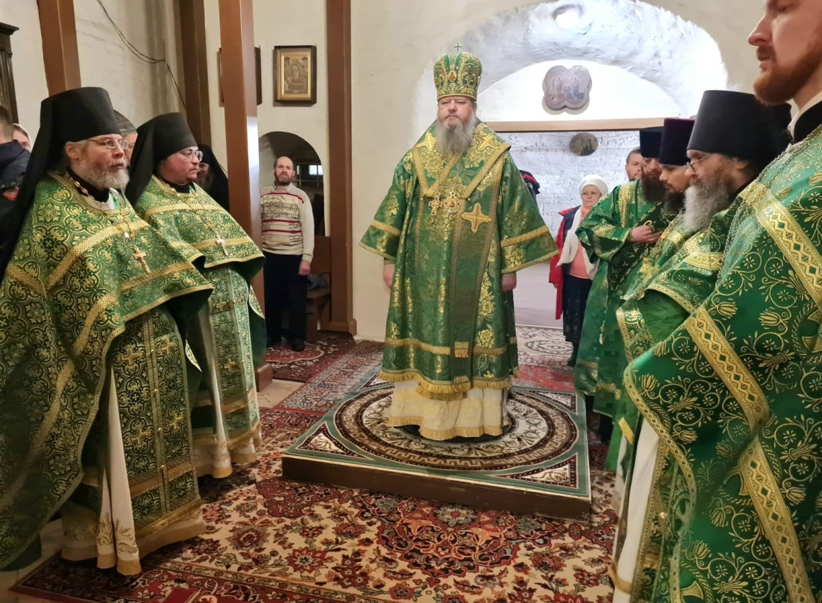 Главе Архангельской митрополии сослужили насельники монастыря в священном сане, а также духовенство из Архангельска.