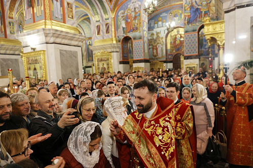 По окончании Литургии состоялась встреча Благодатного огня, доставленного со Святой Земли.