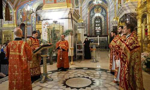 Богослужебные песнопения исполнил хор монастыря.