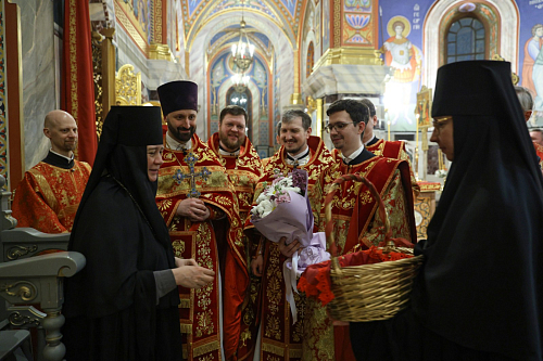 За Литургией молились настоятельница Воскресенского Новодевичьего монастыря игумения София (Силина) с сестрами, прихожане и гости обители.