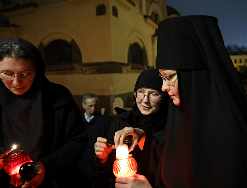 Духовенство монастыря совершило пасхальное богослужение.