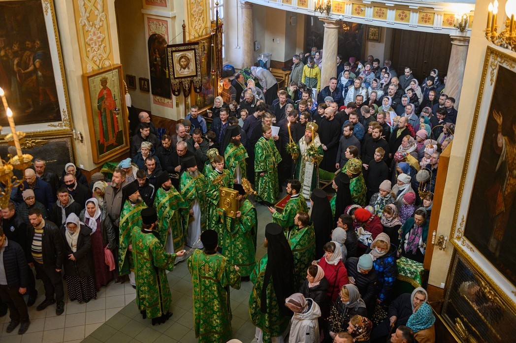 По запричастном стихе митрополит Тихон обратился ко всем собравшимся с архипастырским словом.