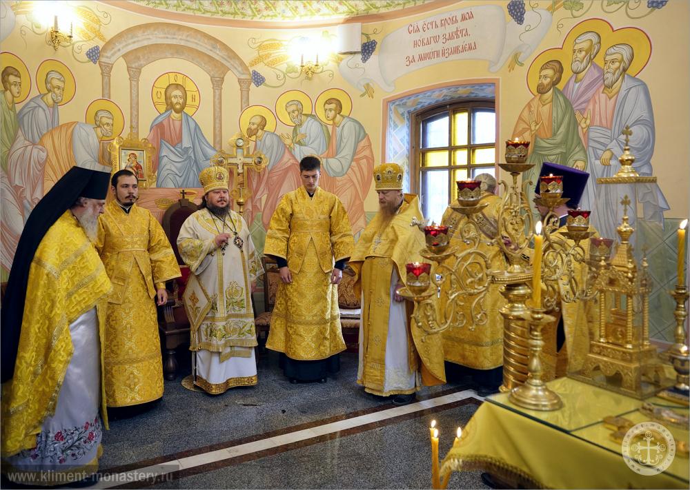 Его Преосвященству сослужило духовенство монастыря в священном сане.