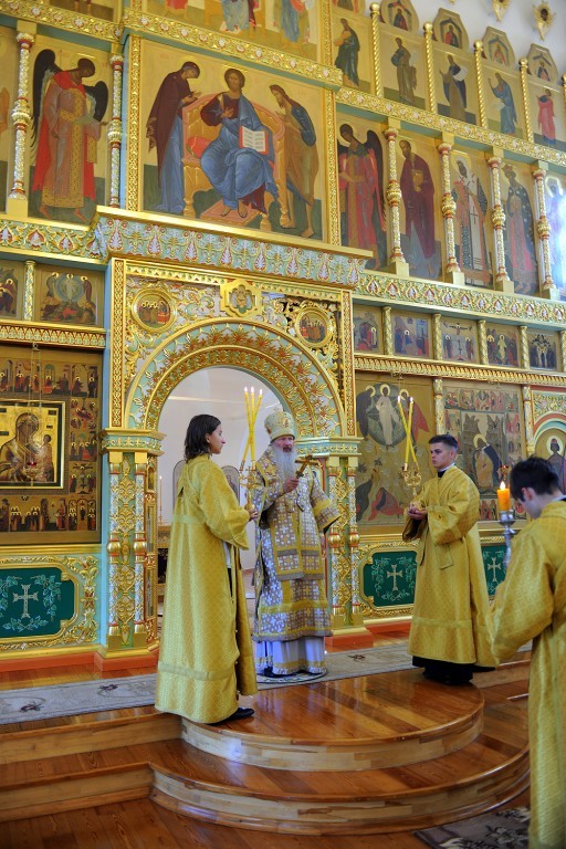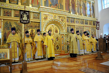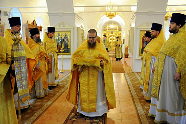 Его Высокопреосвященству сослужили благочинный Первого вятского благочиния протоиерей Дмитрий Антонов, руководитель Епархиального отдела по делам молодежи и настоятель храма в честь иконы Божией Матери «Всех скорбящих Радость» протоиерей Сергий Ендальцев, настоятель Троицкой церкви с. Медяны протоиерей Андрей Дудин, секретарь Вятской епархии иерей Виталий Лапшин, благочинный Нижнеивкинского и Кукарского благочиния иерей Николай Андреев, клирики Преображенского женского монастыря протоиерей Андрей Лебедев и иерей Алексей Борисов.