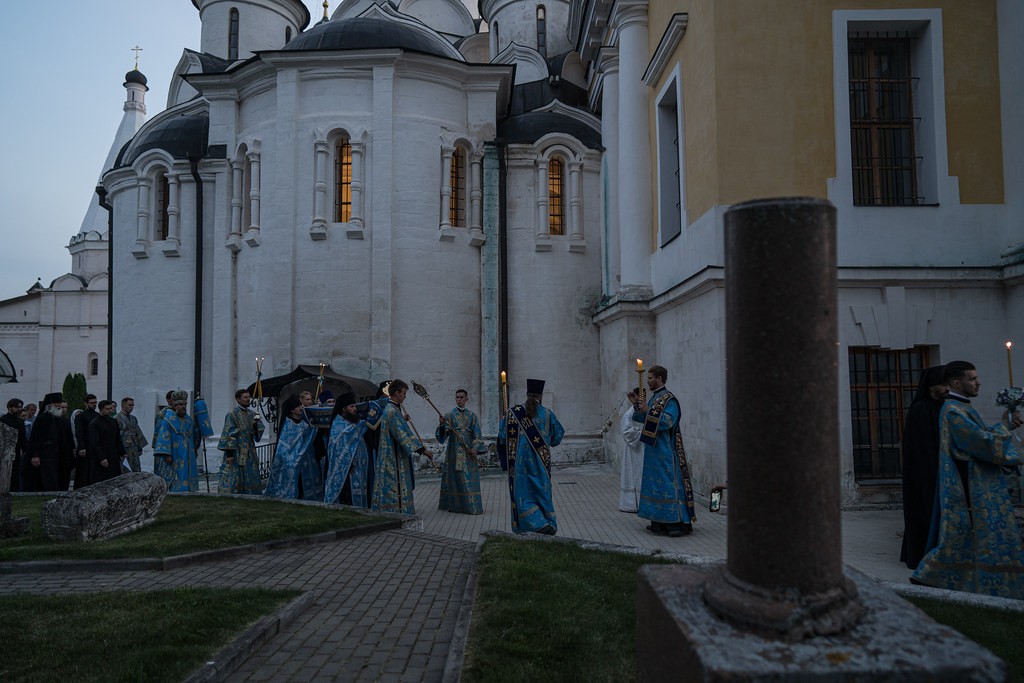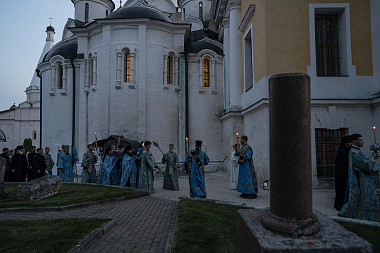 Накануне, 27 августа священноархимандрит обители митрополит Тверской и Кашинский Амвросий совершил в Успенском соборе малую вечерню с чтением акафиста Успению Божией Матери и торжественное всенощное бдение с чином погребения плащаницы Пресвятой Богородицы.