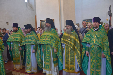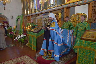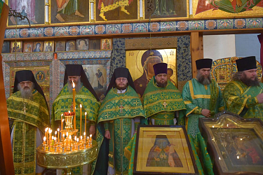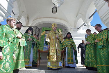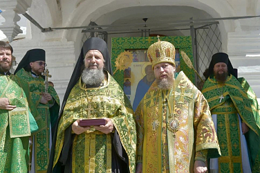 По окончании торжественного шествия Владыка поздравил прихожан с памятным для обители днем, обратившись к молящимся с архипастырским назидательным словом.
