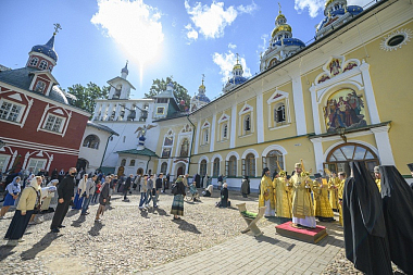 13 июля 2020 года, в день празднования Собору святых 12-ти апостолов, митрополит Псковский и Порховский Тихон совершил Божественную литургию в Свято-Успенском Псково-Печерском мужском монастыре.