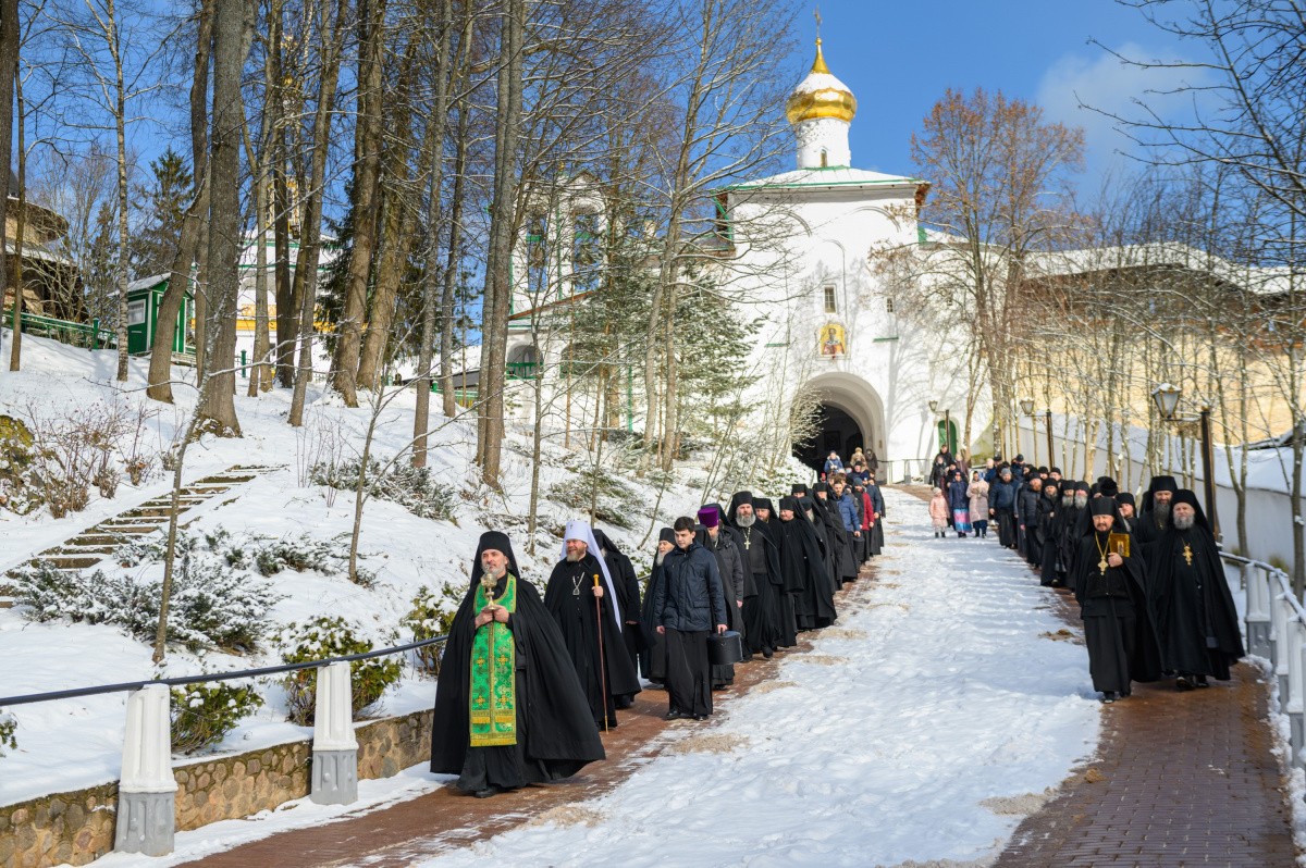 Его Высокопреосвященству сослужили: архимандрит Спиридон (Иващенко), наместник Свято-Благовещенской Никандровой пустыни; архимандрит Филарет (Кольцов), насельник Свято-Успенского Псково-Печерского монастыря; архимандрит Марк (Быстриков), насельник Свято-Успенского Псково-Печерского монастыря; иеромонах Серафим (Козулин), наместник Спасо-Преображенского Мирожского монастыря; иеромонах Всеволод (Сиканов), наместник Иоанно-Богословского Савво-Крыпецкого монастыря; иеромонах Прохор (Андрейчук), благочинный Свято-Успенского Псково-Печерского монастыря с братией обители; протоиерей Владимир Семиндяев, благочинный Печорского округа епархии; гости монастыря в священном сане.