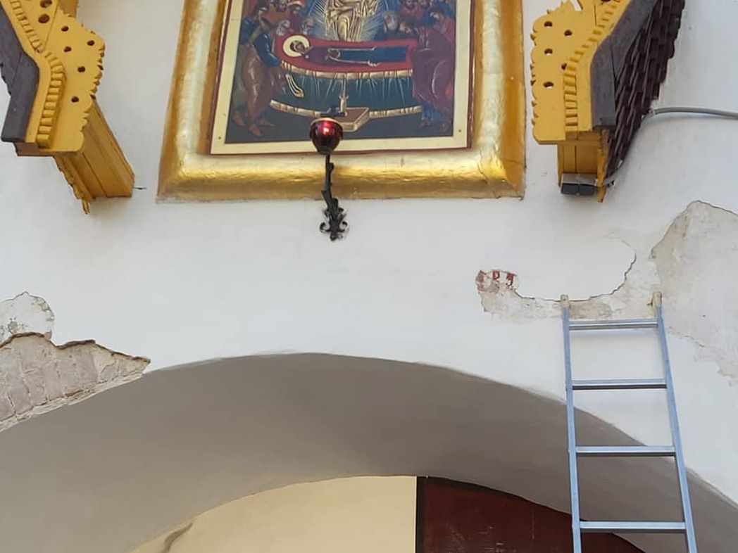 В Свято-Успенском Псково-Печерском мужском монастыре в ходе проведения инженерно-технических исследований на башне Святых ворот при устройстве зондажей над верхней частью исследуемого арочного проезда был раскрыт фрагмент исторической надписи.