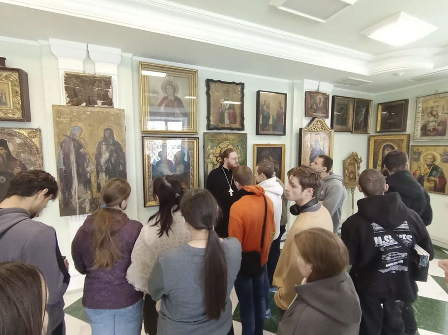 В Древлехранилище Церковно-археологического кабинета Тамбовской епархии студенты смогли прикоснуться к святыням прошлого: перед их взором предстали великолепная плащаница Спасителя, вышитая золотыми нитями, а также редкие образцы церковных облачений XIX века. Ребята смогли увидеть редкие иконы, написанные на святой горе Афон.