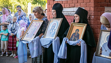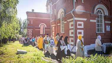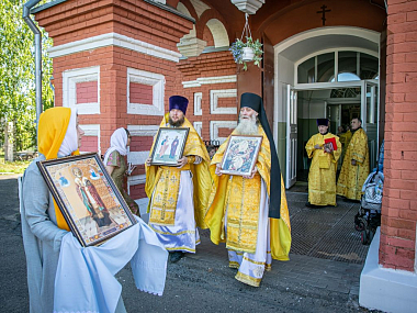По окончании Божественной литургии Его Высокопреосвященство вместе с сослужившим ему духовенством совершил крестный ход вокруг обители.
