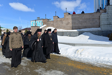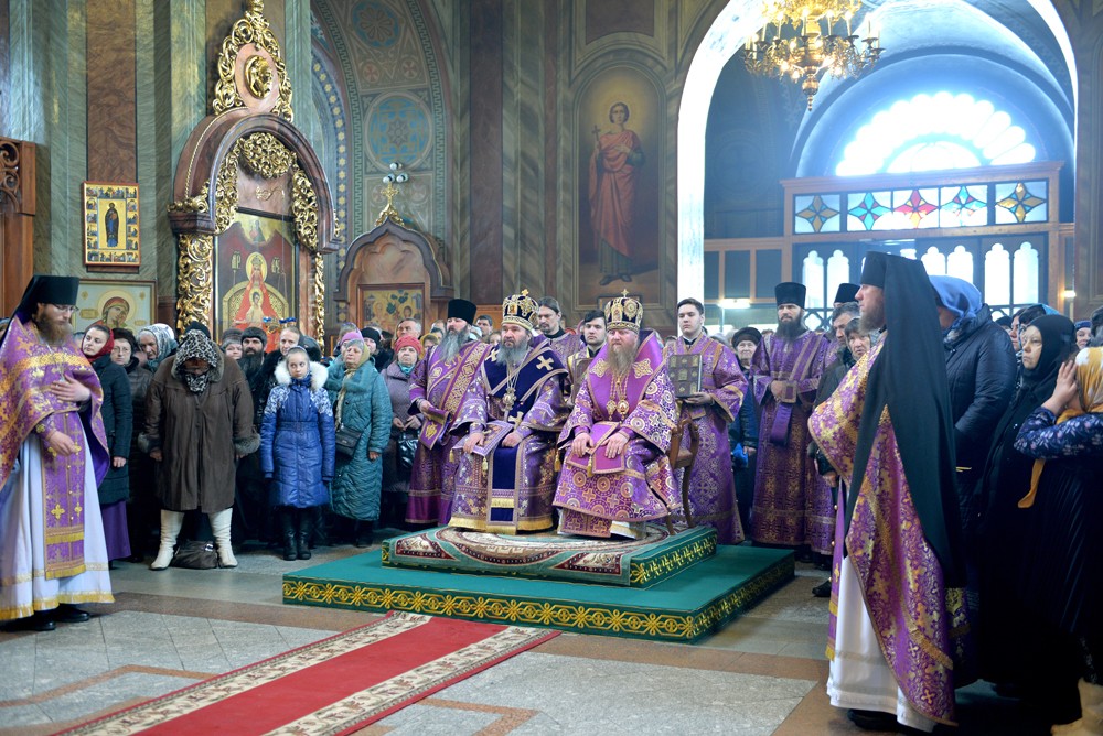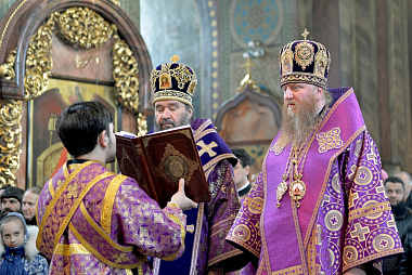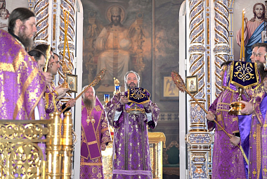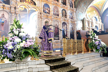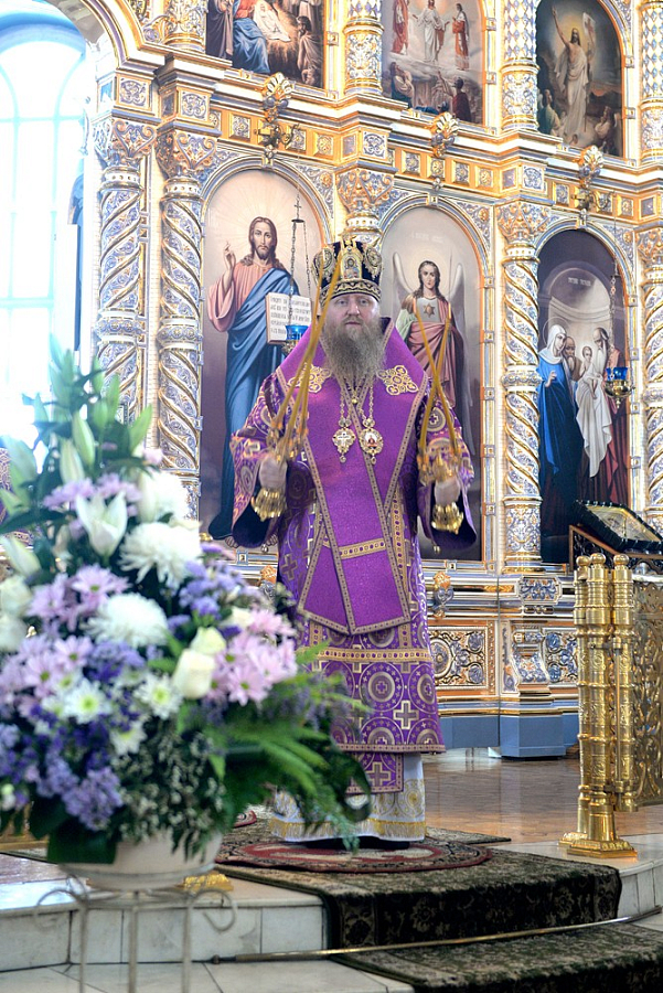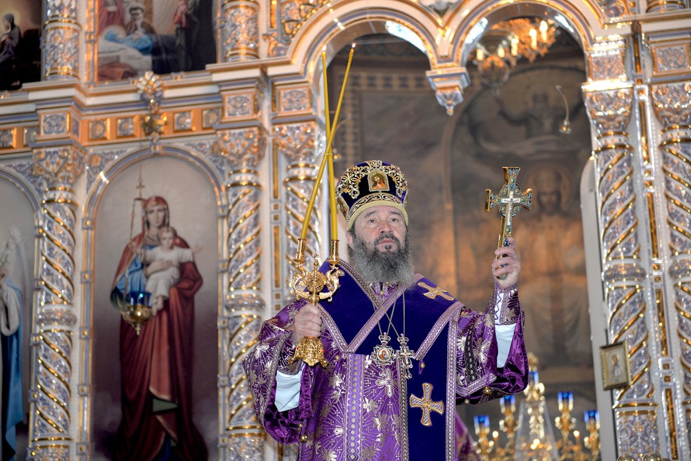 После чтения Евангелия правящий архиерей Калмыкии Высокопреосвященнейший архиепископ Юстиниан обратился к молящимся с архипастырским словом.