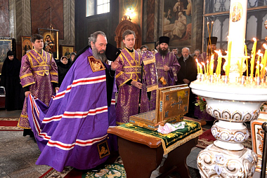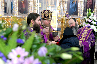 25 марта 2018 года, в Неделю 5-ю Великого поста, день памяти преподобной Марии Египетской, Божественную литургию в Рождество-Богородицком мужском монастыре г. Задонска возглавил архиепископ Элистинский и Калмыцкий Юстиниан в сослужении викария Липецкой епархии епископа Усманского Евфимия и духовенства обители.