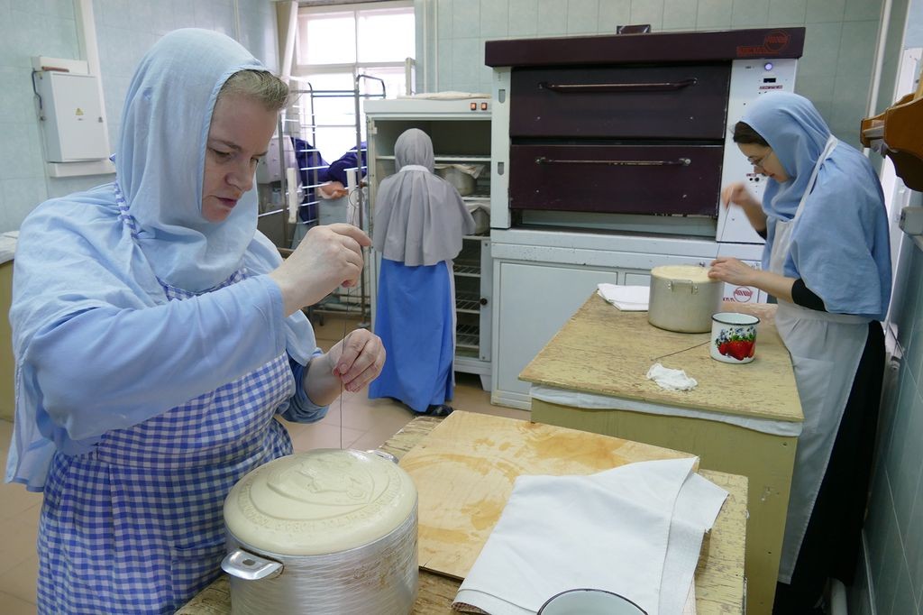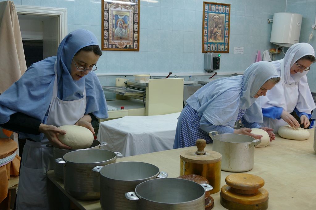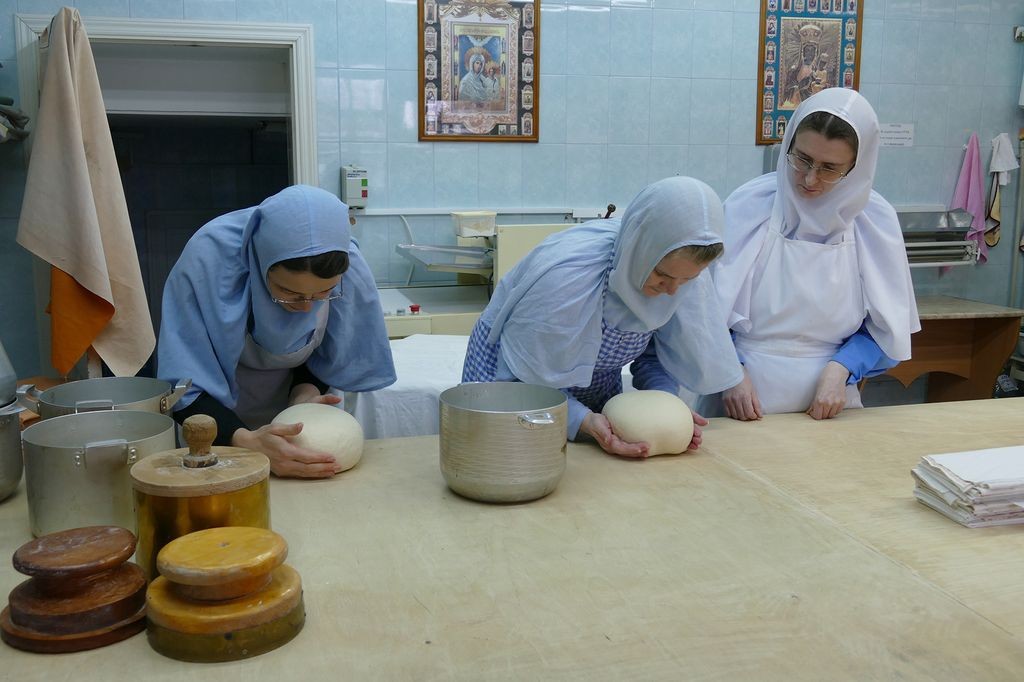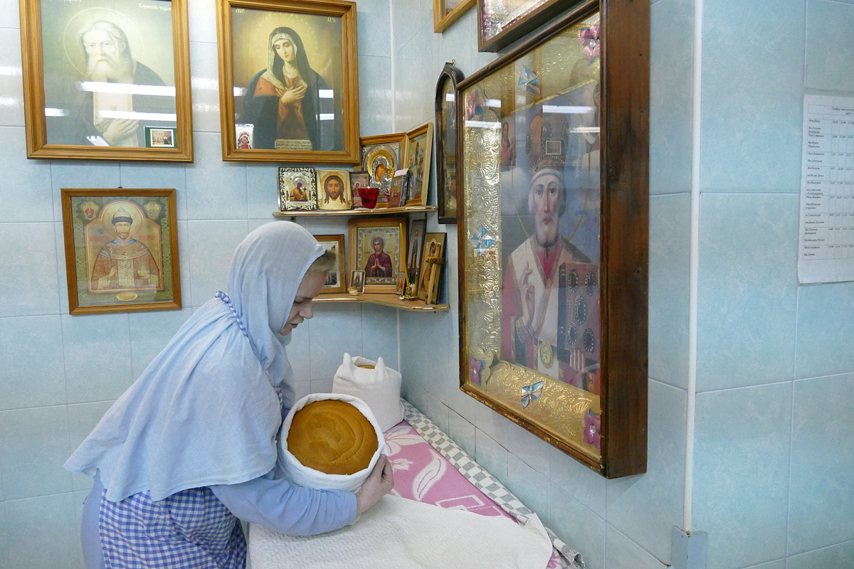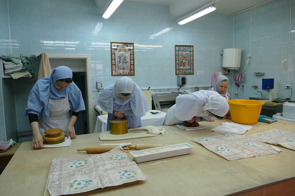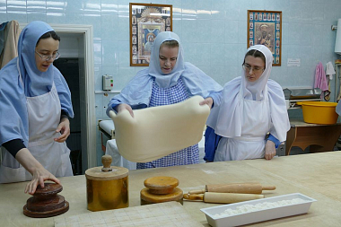 За одну выпечку сестры изготавливают девять артосов. В день бывает по три выпечки. До Пасхи необходимо изготовить сто пятьдесят артосов – именно столько нужно для монастыря, его скитов и подворий.