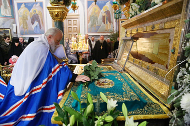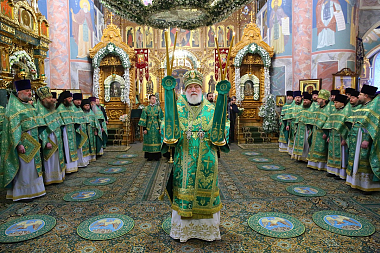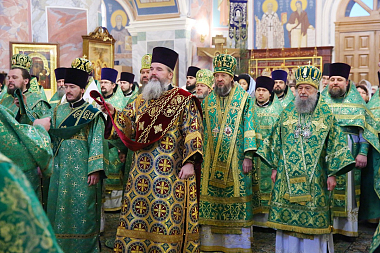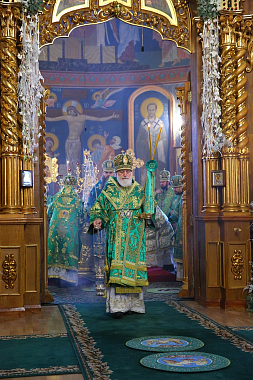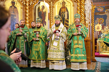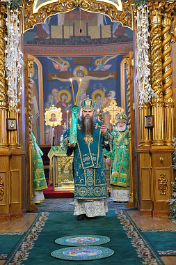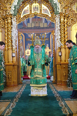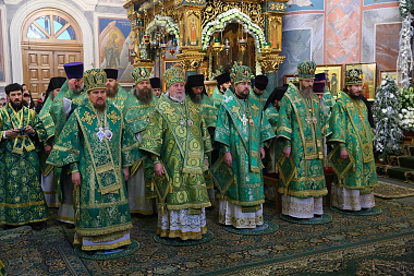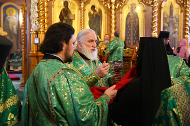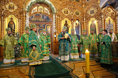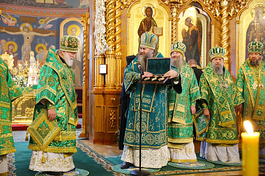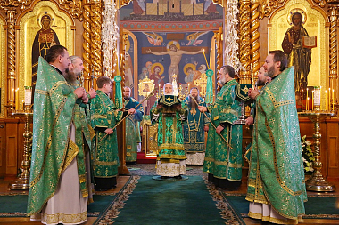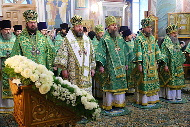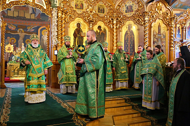 Богослужение в Троицком соборе обители, где пребывают мощи святого, возглавил Патриарший экзарх всея Беларуси митрополит Минский и Заславский Павел.