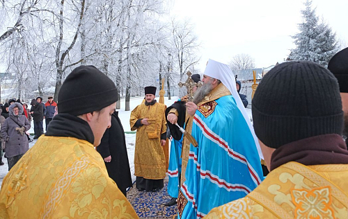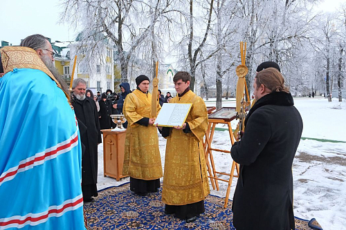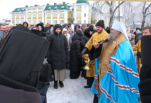 По окончании поздней Божественной литургии, которая совершалась в Троицком соборе архиерейским служением, митрополит Нижегородский и Арзамасский Георгий совершил молебен на начало доброго дела и окропил святой водой место будущего строительства.