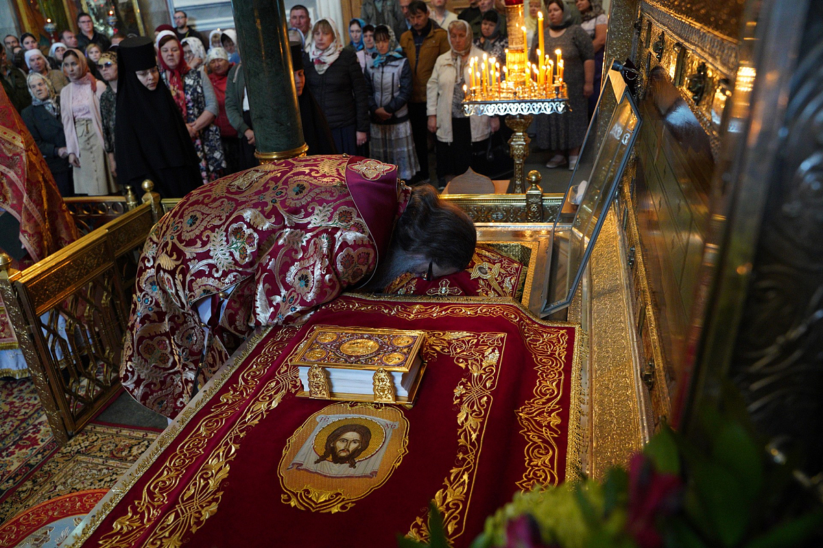 В Троицком соборе монастыря молилась большая группа паломников из Запорожской епархии. Духовенство и миряне во главе владыкой Лукой, начиная с 13 мая, совершают паломнический автопробег по святым местам России.