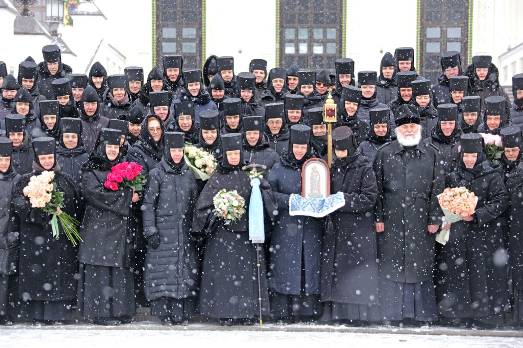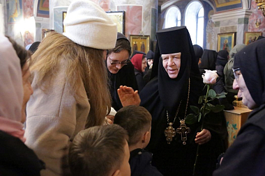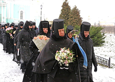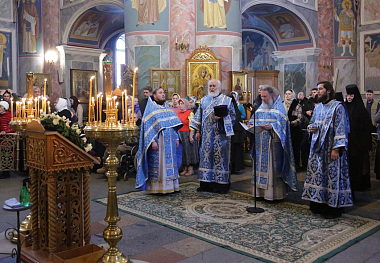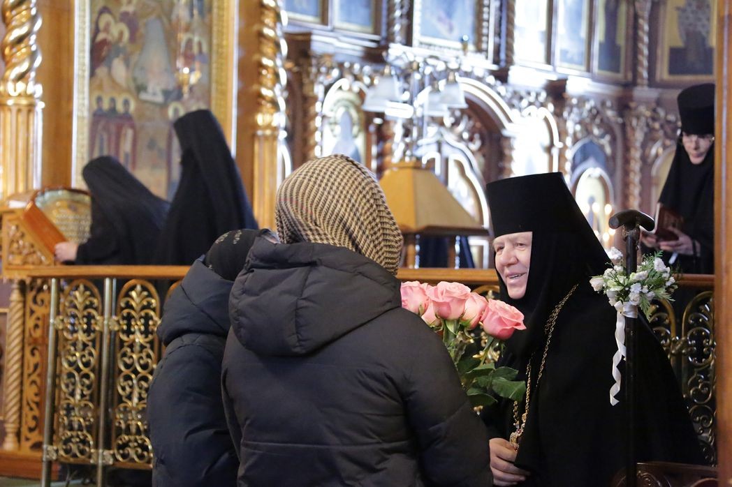 По дивеевской традиции, перед началом праздничного вечернего богослужения сестры встретили матушку настоятельницу у игуменских покоев и сопроводили ее сначала в Троицкий собор на совершение монашеского правила, а затем в Благовещенский собор. В этот памятный день богослужение совершилось с чтением акафиста Пресвятой Владычице Богородице, монашеских обителей Всечестнейшей Игумении.