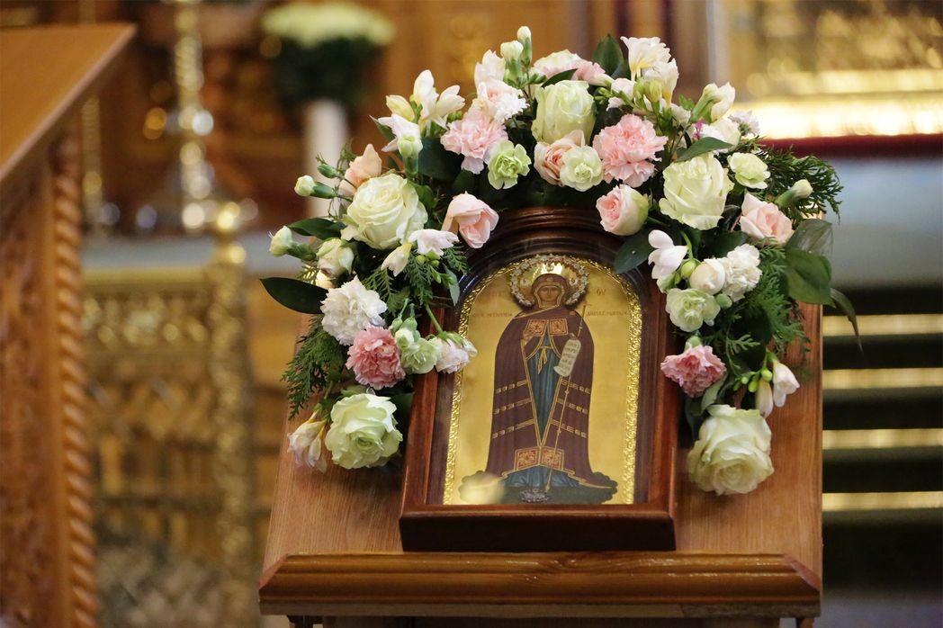 В центре храма на аналое поместили украшенную цветами икону Царицы Небесной «Дивеевская Игумения», написанную сестрами монастыря по подобию Афонской. Этот образ символизирует игуменскую власть Божией Матери над Дивеевской обителью, Ее четвертым жребием во вселенной. Преподобный Серафим наставлял приходивших к нему дивеевских сестер: «Что вам пещися! Матерь Божия собрала вас, Сама нареклась вам Игуменией. Она все управит, защитит, разберет и заступит, все Ей известно и все возможно!»